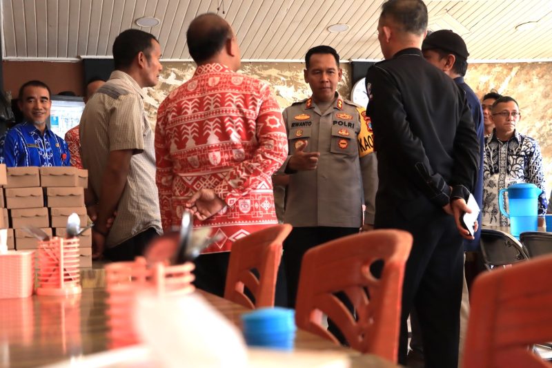 Kapolres Kotamobagu AKBP Irwanto, SIK, MH bersama penjabat Walikota Kotamobagu Abdullah Mokoginta, SH, MSi berdialog langsung dengan para pedagang untuk mengecek langsung stabilitas harga bahan pokok serta ketersediaan gas LPG di beberapa pangkalan.