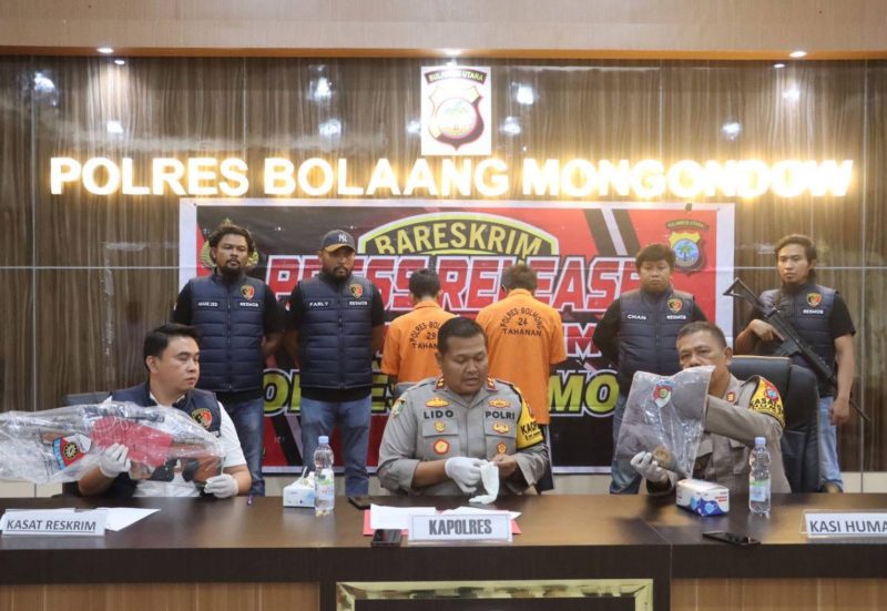 Dalam press conference yang digelar di Mapolres Bolmong, Kapolres AKBP LIDO R. ANTORO, S.H., S.I.K., M.M menyampaikan bahwa pihaknya telah menangkap 2 (dua) tersangka yang terlibat dalam kasus tersebut.